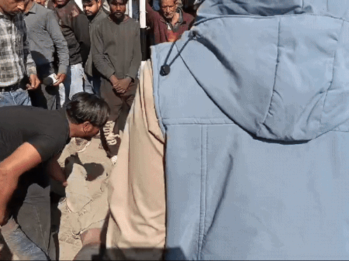 युवक के शव शव को को rama में rasapay लोग।Vasauta के kaytaun…